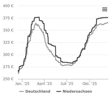 Der Preis für lose Holzpellets in Niedersachsen beträgt heute im Durchschnitt 376,25 € pro Tonne. Eine Tonne Holzpellets Sackware in Niedersachsen kostet derzeit 410,21 €.