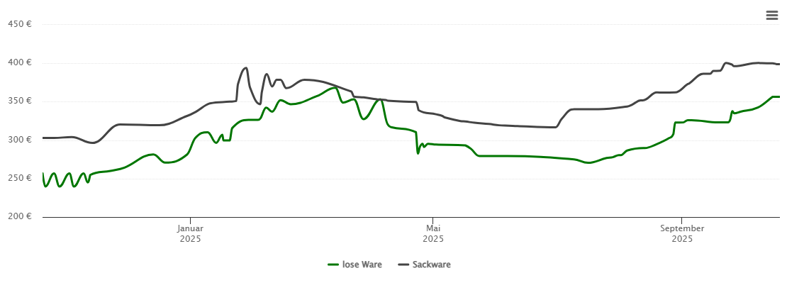 Die Pelletspreise für Deidesheim haben sich in den letzten zwei Wochen stabilisiert und sind teilweise sogar leicht zurückgegangen. Von einer Trendwende zu sprechen, wäre aber sicherlich noch zu früh, zumal die Nachfrage in den letzten Tagen, aufgrund des Wintereinbruch... weiterlesen